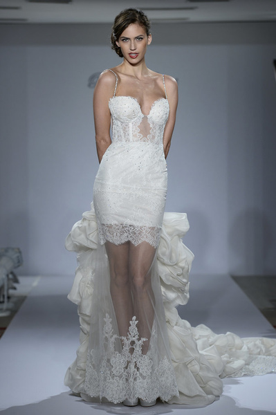 فستان زفاف بسيط وناعم من برونوفياس للعروس الجريئة ذات شكل الجسم المستطيل ليبرز الخصر وبعطيكي اطلالة انثوية يناسبه تسريحة شعر مرفوعه ناعمه